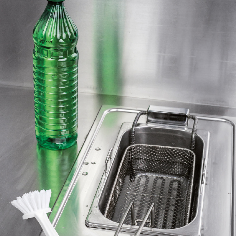 - Engedjük le a sütőből az olajat, amíg az még meleg, és a megfelelő módon – vezetői utasítás szerint – kezeljük a használt (hulladék) olajat! Öblítsük ki az olajsütőből az összes morzsát forró vízzel!