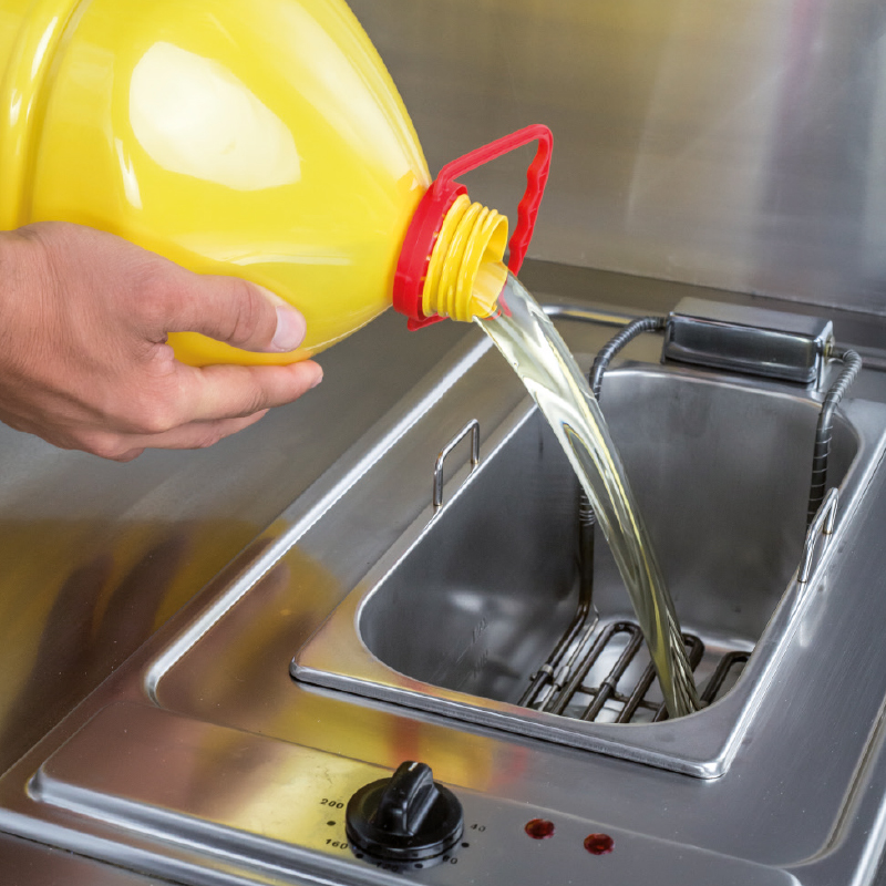 Az olajsütő megtöltése folyékony olajokkal